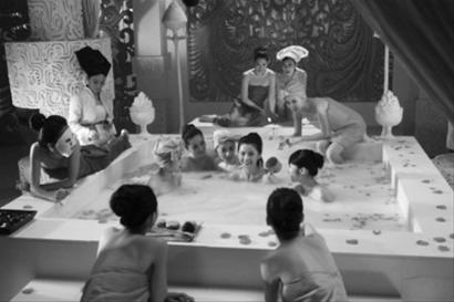 片中,有一場蔡卓妍和眾多宮女在大型浴缸洗澡的場景戲。唯美的場景,加上眾多的美女,令整個畫面看起來相當養(yǎng)眼。記者從片方處得知,為了打造這段場景戲,投資方不惜花費重金,耗資金百萬打造豪華皇宮,周邊的布景和擺設(shè)也是全部按照皇室宮廷級別設(shè)計。置身于這樣的場景拍洗澡戲,蔡卓妍也表示,“真的享受了皇后的待遇”。