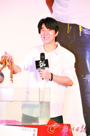 成龍雖未到場,房祖名卻請來了時下最火的明星“章魚哥”保羅來為新專輯的成績做預(yù)測。房祖名分別將“金曲獎”和“銷量突破50萬”兩個心愿牌放在兩個被罩住的魚缸前,并許愿說,“得‘金曲獎’比較現(xiàn)實(shí)點(diǎn),章魚哥你還是選‘金曲獎’這邊的魚缸吧!”揭開幕布,“章魚哥”果然沒讓房祖名失望。他高興得立即從缸里撈起“章魚哥”,猛地一陣愛撫,隨后發(fā)現(xiàn)保羅沒什么精神時,房祖名緊張大呼“趕緊送‘章魚哥’去醫(yī)院治!”(記者 程雪超 攝影報道)