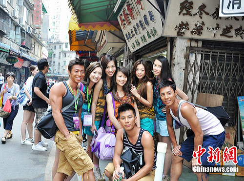 中新網(wǎng)韶關7月19日電(記者 李凌)7月19日上午,在廣東韶關進行外景拍攝和采風的2010年準港姐、港男在游覽市區(qū)時,受到當?shù)厥忻駠^。陪同前往的08年港姐高海寧更是備受矚目,成市民眼中最靚佳麗。