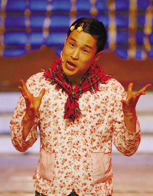 這期《新聞周刊》的文章說,外表上看來,小沈陽很謙虛禮貌,很難想像他畫著大濃妝、帶著發(fā)卡、穿著禮服在臺上喝啤酒、講下流笑話、活蹦亂跳、大喊大叫的樣子。最近一次演出中,他穿著帝王式的絲質長袍,卻背了一個粉紅色的Hello Kitty的書包。