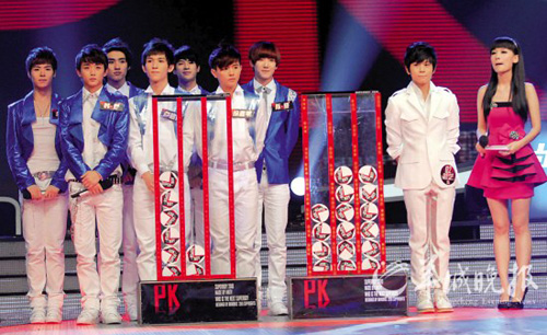 上周五晚,第一次正式加入今年“快男”全國總決賽的8090組合,在“快樂天團(tuán)8090踢館夜”直播中,上演了一場讓人看不懂的“踢館賽”。成立剛一個(gè)星期的8090組合,在演唱了兩首歌后便被頗受爭議的“人氣王”武藝淘汰出局,使得他們的“快男”之路迅速告終。今年“快男”飽受非議的賽制再一次成為批評的焦點(diǎn),著名的神秘“舞美師”更直斥導(dǎo)演團(tuán)隊(duì)要?dú)У艉闲l(wèi)視的選秀王牌。
