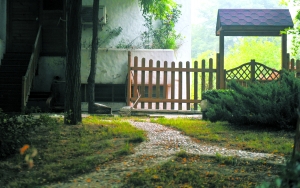 打人男子所在別墅的門牌號為“35號甲”,與郭德綱家同為一套雙拼式別墅。其家后院也用木柵欄圍起了與郭德綱家差不多的后院,并建有木制涼亭。當(dāng)天,記者就其別墅是否圈占綠地一事詢問時(shí),打人男子稱:“關(guān)你們什么事,再問我就打人!辈⒆鰮]拳狀,被旁人攔下。