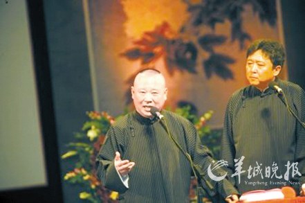 郭德綱在弟子打傷記者事件爆發(fā)后,消失了十多天,本月14日晚終于在北京公開亮相!肮戮V·于謙合作十周年相聲專場”系列演出當晚在北京北展劇場舉行,郭德綱率德云社弟子岳云鵬、孔云龍等輪番上場。14日、16日兩場演出,4800個座位全部爆滿。郭德綱接受記者訪問時表示,自己不會退出娛樂圈,德云社也不會關門。