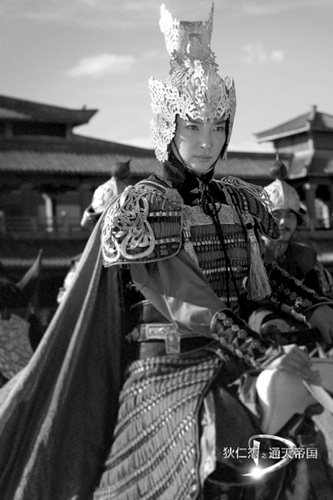 繼劉德華、劉嘉玲的造型被曝光后,李冰冰在《狄仁杰》中的兩組劇照曝光,飾演上官靜兒的李冰冰分別以將軍、宮女造型亮相,男裝威武,女裝嬌媚。影片造型指導(dǎo)余家安透露,李冰冰的造型是五個(gè)主要角色中最多的一位,單是她的男裝造型就有13款之多,而女裝卻僅有一款,對此李冰冰笑言:“我這次把一輩子的男裝全穿完了”。 記者馬丹