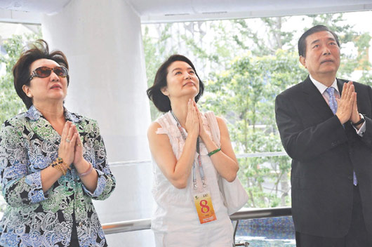 上海世博會(huì)開幕以來,臺(tái)灣館備受各界稱贊,昨天更出現(xiàn)2位來自臺(tái)灣的大明星,久違熒光幕的林青霞,在昔日影壇好友女星楊惠姍、導(dǎo)演張毅陪同下,參觀臺(tái)灣館,吸引場內(nèi)場外廣大粉絲的目光。