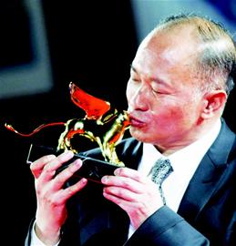 儀式正式開始后,電影宮首先播放了一段節(jié)奏明快的短片,將吳宇森從影數(shù)十年拍攝電影的精彩鏡頭剪輯在一起。徐克現(xiàn)場改編了他與吳宇森合作的經(jīng)典作品《英雄本色》里的臺詞來向吳宇森致敬,“我要爭一口氣,不是想證明我了不起,我是想告訴人家,我只想得到我應(yīng)該得到的東西。”隨后吳宇森上臺,接過閃閃發(fā)光的金獅獎杯,他眼含淚光,連連鞠躬致意。在致辭中他對所有支持他、幫助他的親朋好友致以誠摯謝意:“小時候電影只是我的一個瘋狂夢想,沒想到如今卻成為現(xiàn)實,我是個幸運的人……母親的話常在我耳畔響起,如果堅信某事,就要堅持到底! (小魚)