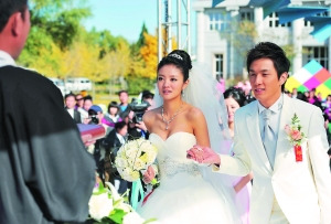 安以軒昨日在微博上說,“今早一醒來就收到神秘人送來的甜蜜巧克力!真是美好的一天~我要結(jié)婚了!”讓人誤以為繼大S之后她也要突然閃婚。其實(shí)只不過是她和韓星李承鉉在北京趕拍電影《結(jié)婚狂想曲》而已。該片講述了一對(duì)戀愛7年的年輕戀人,在準(zhǔn)備結(jié)婚的前幾天,因一場無名火燒碎兩人的夢(mèng),于是決定以舉辦一場網(wǎng)絡(luò)視頻婚禮直播洞房花燭夜為由頭,吸引各類廠商贊助從而博得貪財(cái)岳母的支持,至此,一場啼笑皆非的婚禮轟轟烈烈地展開。昨日記者趕往劇組探班,正好趕上男女主角結(jié)婚的一場大戲,安以軒和李承鉉還在現(xiàn)場大秀吻技,惹得一片驚叫連連。