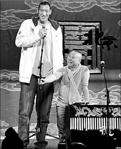 昨晚的相聲晚會(huì),是“增愛基金”發(fā)起的慈善拍賣、足球義賽后的又一大活動(dòng),用以答謝各界慈善人士!皝喼薜谝桓摺钡幕@球運(yùn)動(dòng)員孫明明和音樂人李健作為綱絲代表上臺(tái)發(fā)言。郭德綱躍起沖頂與孫明明合影的一幕爆笑全場,隨后老郭高舉麥克風(fēng)規(guī)勸“明明少說兩句”的插科打諢再次樂翻嘉賓。