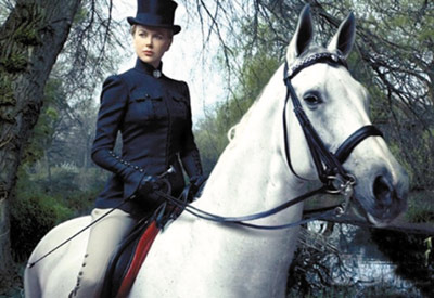 在澳洲趕牛,靠的是騎馬揚(yáng)鞭。在這方面,看似嬌滴滴的妮可其實(shí)一點(diǎn)都不像她扮演的英國貴婦莎拉那樣不在行,她的騎術(shù)甚至相當(dāng)不錯。在片中,她脫下了貴婦裝,穿上了騎馬裝———襯衫、馬褲和長靴雖然硬朗,卻奇異地讓妮可的身材更顯曲線。上千頭牛一起在草原上奔跑,這是《澳洲亂世情》中最令人震撼的場景之一,而妮可騎在馬上的嬌小身影就混雜其中。她大聲吆喝,策馬揚(yáng)鞭,混雜著汗水和塵土的臉蛋泛著紅光,成為國外觀眾心目中妮可最性感的造型。