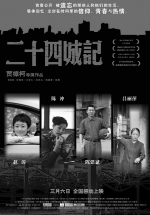 《二十四城記》作為第61屆戛納電影節(jié)正式競賽片,不久前入選美國《電影評(píng)論》雜志2008年度十大佳片。全球?qū)⒂谐^三十個(gè)國家發(fā)行該片,是今年最受國際矚目的華語電影之一。盡管導(dǎo)演賈樟柯一再表示《二十四城記》早已靠海外發(fā)行成功收回成本,然而新作是否能被中國主流的電影觀眾接受,依然是一個(gè)至關(guān)重要的問題。