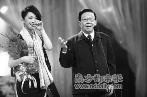 2008年度影視頒獎盛典7日晚揭曉,周迅的恩師謝鐵驪導(dǎo)演親自為她頒獎,讓周迅不禁激動落淚:“沒有謝導(dǎo)就沒有今天的我!(見上圖)當宣布邀請謝鐵驪導(dǎo)演登臺頒獎時,原本在臺上的周迅立即沖下去,走到觀眾席親自攙扶謝導(dǎo)走上舞臺。18年前周迅在銀幕處女作《古墓荒齋》,正是出自謝鐵驪導(dǎo)演之手。此番再次會面,讓兩人都是感慨不已。