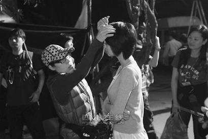 昨日拍攝的戲其實(shí)并沒有太多復(fù)雜的內(nèi)容,畫面就是高圓圓和鄭宇成在一條老巷子里面邊走邊說的畫面,不過兩人來來回回走了一晚上,拍攝了一個通宵。為了營造一種雨后的氛圍,劇組人員用水管將整個小巷子澆得濕漉漉的,連墻體都要全部澆濕。住在巷子里的居民都成為了群眾演員,該開店還開店,該打麻將還打麻將,只是不能在巷子里走動而已。因?yàn)閮扇巳坑糜⒄Z對白,所以每次拍戲前高圓圓都拼命地練英語,特別是她還要背草堂的英文解說詞,難度很大。“說好英語可能不容易,說熟了總沒問題吧?隨便什么語言,說上1000次,總歸熟練一點(diǎn)!