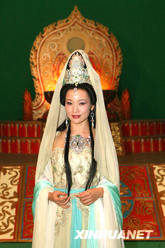 一直在上海車墩影視基地緊張拍攝的《新西游記》昨天(30日)組織媒體探班,師徒四人、觀音、牛魔王、如來佛都以劇中的照型出現(xiàn)。而扮演唐僧的陳司翰,更是在現(xiàn)場意外的見到來看自己的爸爸。最令人意外的是陳沖以“觀音”打扮亮相,從未出演過電視劇的陳沖此番出演新版《西游記》,不知道是個(gè)人演藝事業(yè)的再次拓展,還是經(jīng)濟(jì)危機(jī)的緣故?