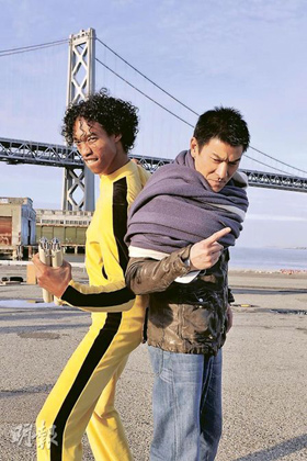 中新網(wǎng)1月9日電 劉德華(華仔)到美國舊金山拍廣告,雖然行程保密,但仍被Fans發(fā)現(xiàn)行蹤。接待大隊(duì)的當(dāng)?shù)毓ぷ魅藛T是超級李小龍迷,他開工時也穿著李小龍的《死亡游戲》經(jīng)典造型服裝,他更帶備雙截棍,令華仔感到萬分佩服。