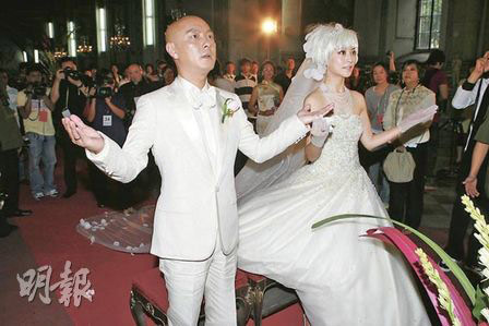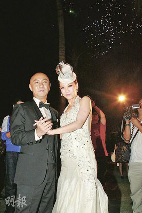 一對(duì)新人在酒店筵開18席,現(xiàn)場又大放煙花,歷時(shí)5分鐘,在浪漫的環(huán)境下,一對(duì)新人忍不住擁抱四目交投,兩度熱吻。結(jié)婚蛋糕共3層,外層的糖衣由粉紅玫瑰和100粒水晶點(diǎn)綴,花了兩日時(shí)間制成,價(jià)值600元美金,整個(gè)婚禮豪花約500萬港元。酒會(huì)前一對(duì)新人先接受訪問,新郎張衛(wèi)健坦言整個(gè)婚禮都十分緊張,還以為自己未讀完誓辭,就跟神父講還未讀完,但神父提他已讀完,余下是新娘子讀,兼且他又?jǐn)[烏龍幫太太戴錯(cuò)戒指在右手。張衛(wèi)健說:“以前不信新娘結(jié)婚當(dāng)天是最漂亮的,原來是真的!彼Q婚后他首要學(xué)習(xí)如何白頭到老,他更羨慕一對(duì)老人家手拖手行街,希望將來都可以做到。