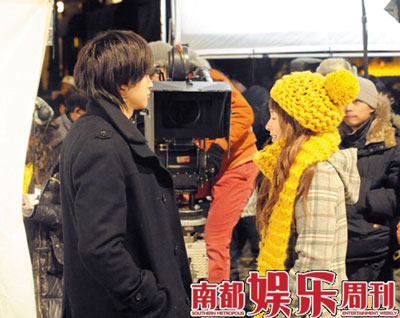 何潤東:跟她一起拍戲還蠻開心的,因為她真的是一個非常友善、非常棒的女孩子。吻戲的事情是這樣的,那天我朋友來探班,他帶了一些北京烤鴨來給我吃,我就一時忘記晚上我跟章子怡還要演吻戲,結(jié)果就吃了很多,然后蘸了很多蔥??后來想起,才發(fā)覺我怎么變成了一個最沒有演員道德的演員?那時滿嘴都臭得要命,現(xiàn)場的燈光師都聞到蔥的味道,更何況章子怡跟我要接吻呢。所以我也覺得特別不好意思,就找了一些味道很沖的魚干給她吃,這樣子我們兩個算是沒有誰對不起誰了。不過最苦的是旁邊工作人員,他們又要被魚干熏,又要被蔥熏,大家看這場戲以為是很浪漫唯美,其實它的背后是味道很難聞的。