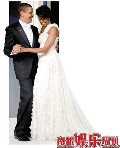 巴拉克·奧巴馬競(jìng)選的時(shí)候,紐約時(shí)尚圈競(jìng)相投靠奧巴馬的名人風(fēng)頭,他和他的夫人早在去年就雙雙被評(píng)為《名利場(chǎng)》雜志年度最佳著裝人士。米歇爾1月21 日晚間出席華盛頓會(huì)議中心的舞會(huì)時(shí)的禮服,是一襲白色雪紡曳地長(zhǎng)裙,操刀這襲晚禮服的是華裔設(shè)計(jì)師吳季剛(Jason Wu),年僅26歲,臺(tái)北出生,并不出名的他從米歇爾身上展現(xiàn)了自己的才華,同時(shí)讓米歇爾贏得了全世界的喝彩。她領(lǐng)跳第一支舞前,奧巴馬還向嘉賓打趣說:“第一件事,我太太漂亮嗎?”迅速惹來全場(chǎng)歡呼。兩人的時(shí)尚風(fēng)頭,一時(shí)無兩。