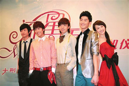 湖南衛(wèi)視制作的《流星雨》昨日在廈門(mén)開(kāi)機(jī),該劇導(dǎo)演柯翰辰及“F4”張翰、俞灝明、朱梓驍、魏晨、“杉菜”鄭爽等主要演員出席開(kāi)機(jī)儀式。