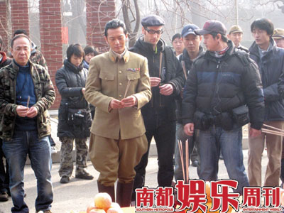 《風(fēng)聲》由臺(tái)灣導(dǎo)演陳國富和大陸導(dǎo)演高群書聯(lián)合執(zhí)導(dǎo),陳國富是寶島影壇上一位編導(dǎo)俱佳的電影人,曾執(zhí)導(dǎo)過《征婚啟事》、《雙瞳》等影片,還曾擔(dān)任過美國哥倫比亞公司的亞洲顧問,多年前他就與華誼公司進(jìn)行合作,華誼兄弟公司出品的《天地英雄》和《非誠勿擾》他都擔(dān)任監(jiān)制,為影片在商業(yè)和藝術(shù)上進(jìn)行把關(guān)。《風(fēng)聲》是陳國富在《雙瞳》之后八年再執(zhí)導(dǎo)筒。記者在片場看見陳國富面容非常憔悴,頭發(fā)已有些灰白,據(jù)說陳國富最近身體不好,一直吃藥,而連續(xù)幾天拍攝他都堅(jiān)持和高群書在片場導(dǎo)演,休息的時(shí)候他也和高群書一起吃飯談話,商量下面的拍攝,看得出他和高群書的合作目前非常融洽。