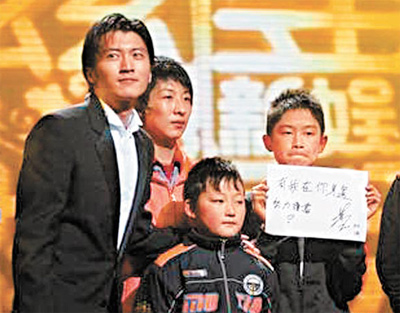 霆鋒多年來(lái)一直資助50名內(nèi)地失學(xué)兒童,前晚大會(huì)安排頒獎(jiǎng)給霆鋒的5名兒童,皆來(lái)自四川地震災(zāi)區(qū)都江堰,且全是由霆鋒資助上學(xué)。近一年來(lái)備受家事困擾的霆鋒,首次見(jiàn)到自己捐助的小孩,頓時(shí)百感交集,他緊緊地抱住這些小朋友,然后眼濕濕哽咽說(shuō):“每當(dāng)我拍戲受傷或者心情低落時(shí),我就會(huì)想自己不能倒下,可能有50個(gè)家庭靠我給他們一頓飯吃。因?yàn)檎J(rèn)識(shí)了他們,我才知道自己有多幸運(yùn),同樣是黃種人,為什么謝霆鋒可以追逐自己的夢(mèng)想,他們卻沒(méi)有這個(gè)機(jī)會(huì)!弊詈笏膭(lì)小朋友說(shuō):“叔叔不怕痛和累,你們也不能放棄!
