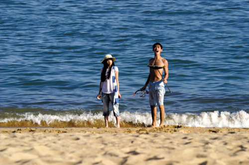 《流星雨》最新劇照的內(nèi)容包括了眾人集體野炊、慕容云海為楚雨蕁潛海捕魚、端木磊在沙灘上與楚雨蕁對(duì)白,以及眾人一起打沙灘排球等多個(gè)場(chǎng)面,但效果卻被網(wǎng)友歸結(jié)為一個(gè)字———“土”。相比之下,韓劇《花樣男子》中李民浩赤裸上身在海灘飛奔的情景,卻讓網(wǎng)友普遍認(rèn)為,他蓬松的卷發(fā)在湛藍(lán)的海水前飛舞的樣子極為性感。據(jù)《花樣男子》劇組工作人員透露,該場(chǎng)景中包括了男女主角的首場(chǎng)感情戲,是劇情中的關(guān)鍵部分,所以劇組專門前往海外進(jìn)行拍攝。除此之外,澳門的威尼斯人(度假村)酒店也是該劇外景地之一。