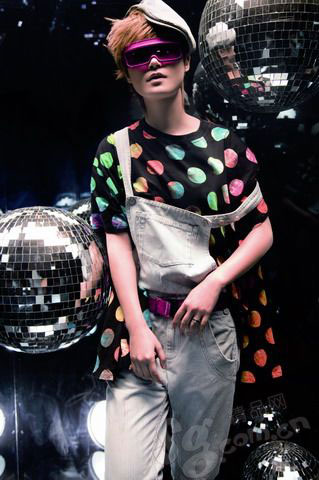 復(fù)古的條紋西服借鑒了Tuxdo的元素,像踏著鼓點(diǎn)、漫不經(jīng)心的爵士舞伶;不規(guī)則的圓點(diǎn)襯衫搭配金屬太陽鏡,轉(zhuǎn)眼間搖身一變成了Disco舞場(chǎng)里的搶眼明星;簡單的T恤與緊質(zhì)的運(yùn)動(dòng)褲,則仿佛小巷里熱愛復(fù)古舞步的搖擺小青年。
