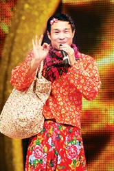 無獨(dú)有偶,小沈陽(yáng)本月7日晚在北京也上演過一場(chǎng)“假鬧”。當(dāng)時(shí),小沈陽(yáng)身披袈裟扮演唐僧,和妻子沈春陽(yáng)扮演的女兒國(guó)國(guó)王在臺(tái)上打情罵俏,極盡搞怪搞笑之能事。演出中途,有個(gè)身穿黑衣白褲的女“粉絲”沖上舞臺(tái)強(qiáng)吻小沈陽(yáng),突然,女“粉絲”的假發(fā)套脫落,原來是男扮女裝的小沈陽(yáng)同門師兄弟小龍。這又是一起故意制造的娛樂噱頭。