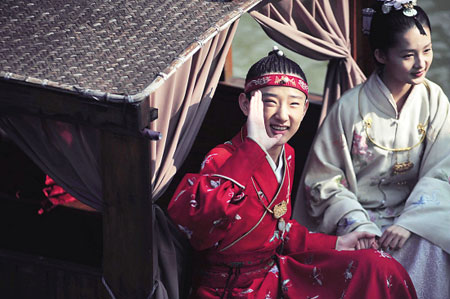 在這個(gè)問題上,造型設(shè)計(jì)葉錦添可算是有先見之明,據(jù)說給小寶玉設(shè)計(jì)的戲服,里面的縫正好夠他長個(gè)兒。但是即便如此,于小彤還是露著腳踝!