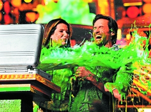 今年的“驚喜”還包括頒獎人休·杰克曼、桑德拉·布洛克被惡搞,打開頒獎箱時,兩人慘遭綠色巖漿噴一身,只能苦笑。此外,上個月在格林美頒獎禮前夕痛毆女友蕾哈娜的克里斯·布朗,本來亦有份提名,及后自動退出;而當晚,亦未見有份角逐最受歡迎女歌手獎的蕾哈娜出現(xiàn)。泰漁