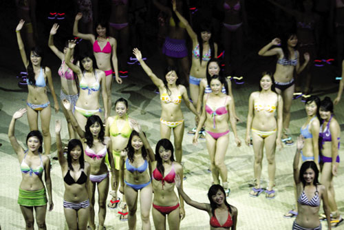 由張藝謀、王潮歌和樊躍“鐵三角”共同執(zhí)導(dǎo)的大型實景演出———《印象·海南島》,昨晚在?谑杏∠髣鍪状喂荨_@是自《印象·劉三姐》、《印象·麗江》“雪山篇”和《印象·西湖》之后的第四個印象系列作品,也是張藝謀繼北京奧運會和殘奧會之后推出的首部作品。因為演出中有上百美女日光浴的場景,有人戲稱:“這是張藝謀在為之前出了‘海灘曬肉’事件的章子怡辯護。”