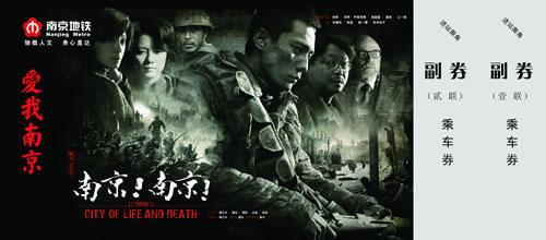 中新網(wǎng)南京四月十七日電:(孫翔鳴 肖玉榮)南京地鐵運(yùn)營(yíng)分公司今日起在南京地鐵一號(hào)線各站出售《南京!南京!》電影主題地鐵紀(jì)念票。該紀(jì)念紙票每套兩張,售價(jià)十元,每張票可不分里程乘車兩次。