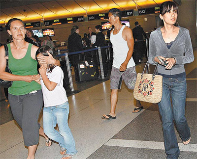 賈靜雯由堂哥、堂嫂和小侄女送到機(jī)場,她一臉?biāo)仡仭⒙燥@憔悴,穿著灰色運(yùn)動帽T、牛仔褲跟夾腳拖鞋,弟弟韋斯利因工作已先行返臺。她見記者守候在機(jī)場有些訝異,但很快就恢復(fù)鎮(zhèn)定對記者說:“你們辛苦了。”如愿見到女兒的她說:“我終于可以放心地好好睡覺了。”