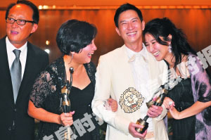 努力20年首獲影帝的張家輝,前晚表現(xiàn)風騷,愛妻關詠荷一直緊跟其后,一臉崇拜,兩人還大方在媒體面前上演親吻秀。對于丈夫獲獎,關詠荷很是感慨,“他為這一天付出了多少,只有我才知道!
