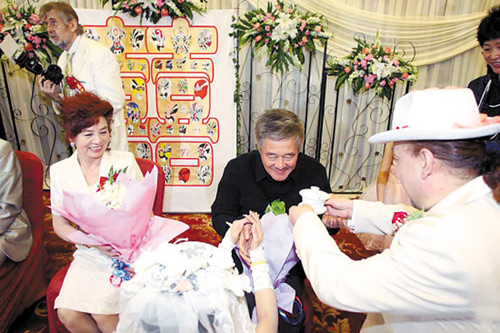 婚禮顯得十分節(jié)儉,選擇在一家四星級酒店舉行,筵開10席,只邀請了包括趙本山在內的親朋好友,連新娘子的化妝都是由贊助商“買單”。在婚禮現(xiàn)場,一對新人的婚紗照被做成真人大小的展架,其中既有經典的西裝婚紗照,也有頗具中國傳統(tǒng)風格的大紅喜服裝束。據(jù)了解,博比·肯出生在烏克蘭一個藝術世家,2001年,他在電視上看了趙本山的小品,“被其深厚的藝術功底所折服”,通過熟人介紹,正式拜趙本山為師。博比·肯表示,他1992年來到中國,立刻被這里古老的文明所吸引,因此,他一早就與新娘張雯婷達成了共識:“我們要辦一個地地道道的中式婚禮。”