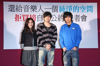 2007年,周杰倫“戳”破唱片圈“買榜”現(xiàn)象,一石激起業(yè)界千層浪。昨日,周杰倫攜手柯有倫、梁文音、豐華唱片新人組合——冰淇淋少女組等多位藝人參加“拒買榜自律公約”記者會,呼吁尊重音樂、不欺騙消費者、不買榜,還給音樂一個純凈空間。記者會上,新力音樂(sony music臺灣翻譯)、環(huán)球唱片、福茂唱片、林暐哲工作室、豐華唱片等多家唱片公司高層主管紛紛到場,做出“不買榜”承諾。