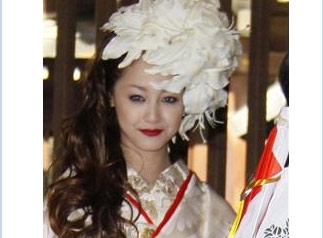 澤尻身襲日本傳統(tǒng)嫁衣,白色和式禮服,上頭鑲著金色、紅色的仙鶴圖案,頭部以大型百合花裝飾,戴上變色隱形眼鏡,以藍色瞳孔亮相,宛如童話中仙鶴新娘。她來回走廊展示嫁衣,并與記者及粉絲們揮手,微笑接受祝賀,一反從前臭臉模樣。