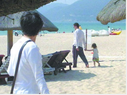 前日,有網(wǎng)友在論壇上貼出李亞鵬、王菲及愛女李嫣等人在三亞海灘游玩的圖片,照片中的王菲一家,相處融洽。李亞鵬拉著李嫣走到海邊,一副慈父模樣(見下圖)。(成風)