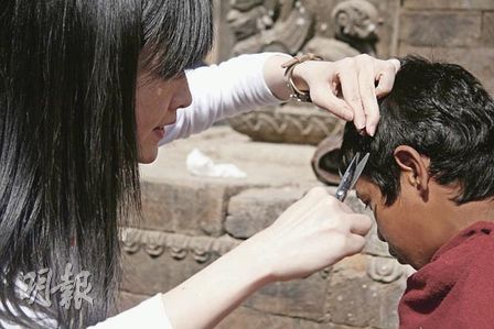 中新網(wǎng)2月10日電 據(jù)香港《明報(bào)》報(bào)道,“饑餓之星”周慧敏、蔡卓妍與張敬軒探訪尼泊爾貧窮村莊,了解當(dāng)?shù)丶彝サ纳顮顩r!澳咛敝芑勖魫(ài)心爆棚,她與孩子相處母愛(ài)大發(fā),親自為她助養(yǎng)的孩子剪頭發(fā)。