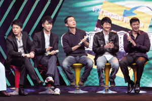 由康洪雷執(zhí)導(dǎo)、《士兵突擊》原班人馬打造的新劇《我的團(tuán)長我的團(tuán)》將于3月2日在江蘇衛(wèi)視進(jìn)行全國首播。昨日,該劇在南京舉行首播式,康洪雷帶著段奕宏、邢佳棟、張國強(qiáng)、劉威葳等演員集體亮相。面對近百家媒體的追訪,康洪雷首次坦露了該劇拍攝時遭遇事故時的慘狀,還給大家揭秘道:“會看哭所有觀眾的,《我的團(tuán)》全是英雄,最后跟日本人拼得只剩下兩個人了!闭f到動情處,現(xiàn)場男演員流下了眼淚。串場的魔術(shù)紅人劉謙,則表演了三個小魔術(shù),輕松賺走20萬。
