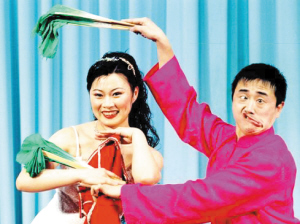 作為趙本山弟子中唯一一個從小學(xué)習(xí)二人轉(zhuǎn)的專業(yè)演員,閆光明不僅嗓子好、武功好,戲路也寬,在“首屆趙本山杯二人轉(zhuǎn)大獎賽”中曾獲表演銀獎。閆光明非?炭,雖然年齡不小了,但現(xiàn)在還是遼寧大學(xué)本山藝術(shù)學(xué)院民族藝術(shù)表演專業(yè)的大四學(xué)生。去年的全國大學(xué)生藝術(shù)節(jié)上,閆光明和妻子趙海燕以一段新編二人轉(zhuǎn)《梁山伯與祝英臺》獲得一等獎。能有今天的成績,閆光明自己也“沒想到”:“我生在二人轉(zhuǎn)世家,能有今天的成績說明這么多年的努力沒白費!彼膊煌兄x師傅趙本山,“師傅讓二人轉(zhuǎn)越來越紅火,我得繼續(xù)努力,把我熱愛的民間藝術(shù)發(fā)揚光大!蔽枧_上擅長模仿趙本山的閆光明說,“我們對天津觀眾很熟悉,因為天津有劉老根大舞臺,我認識了很多天津朋友。這次來天津演出,希望大家一樣支持我!