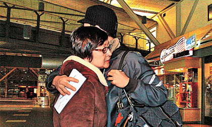 抵閘口時,Edison母子依依不舍深情擁抱,Edison跟母親說聲“Take care(保重)”后便由公司同事陪伴入閘,兩保鏢未有隨行。據(jù)知Edison乘坐的是國泰航班商務(wù)客位。