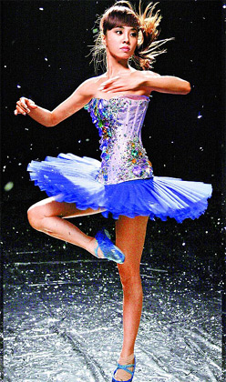 另外,蔡依林為本月27日即將發(fā)行的新專輯《花蝴蝶》,去年下半年都在苦練芭蕾舞的絕技“鞭轉(zhuǎn)”,要不中斷的原地旋轉(zhuǎn)20圈。日前拍預(yù)購廣告當(dāng)天,為表現(xiàn)此技藝,NG60次才完成一鏡到底。去年她特地上瑜伽課程加強(qiáng)肌耐力,強(qiáng)忍暈眩及腳底磨出水泡,終于在3個(gè)月后完成任務(wù),她苦笑說:“這是我練過最久的才藝!