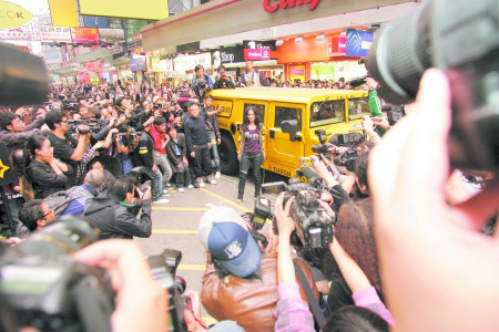 “阿嬌,把你電話號碼告訴我”“阿嬌,我愛你”……粉絲的瘋狂讓臺上的阿嬌尷尬了好一陣,還好,她的笑容還很燦爛。繼前日勇敢面對媒體后宣布復(fù)出后,昨日下午阿嬌又鼓起勇氣前往鬧市試人氣。