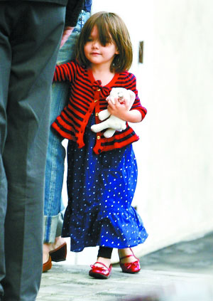 昨天,加州圣塔莫尼卡,阿湯嫂凱蒂帶著女兒蘇瑞和貝克漢姆的兩位小公子一起到兒童藝術(shù)中心觀看展覽。據(jù)悉,凱蒂目前正在設(shè)計(jì)童裝,進(jìn)軍時(shí)尚領(lǐng)域,靈感來(lái)自于她和阿湯哥的女兒蘇瑞。凱蒂說(shuō)她與朋友從一年前就開(kāi)始一起工作,畫(huà)草圖買樣衣。
