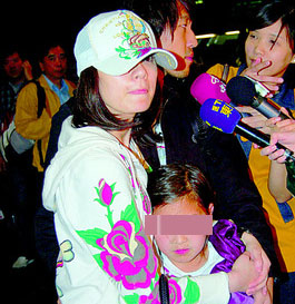 賈靜雯出現(xiàn)后,等候多時的記者立刻蜂擁而上,這時從接機人群沖出一位年約七、八歲小女孩,奔向賈靜雯懷抱,大家以為是梧桐妹,立刻上前圍堵爭拍,賈靜雯用手護住女孩面龐,擔心她被閃光燈嚇到。賈靜雯說,這是一個親戚的女兒,不是梧桐妹,何時能見到女兒,還要等孫志浩的電話。