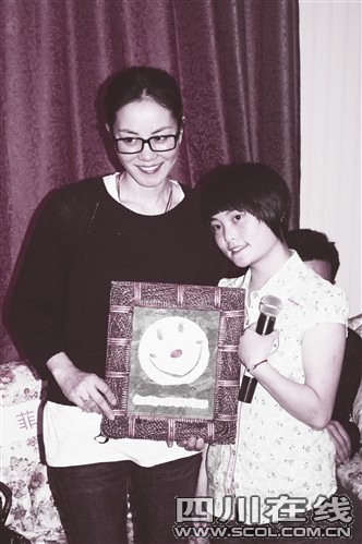 而另一名在地震中腦部受傷的小朋友王麗,還為王菲送上了自己編織的兩個(gè)“水晶”蘋果,并唱了一首《一千零一夜》,雖然有些走音,但王菲一直用微笑鼓勵(lì)她,李亞鵬還摸著王麗的頭,讓她以后好好唱歌,爭(zhēng)取當(dāng)歌星。