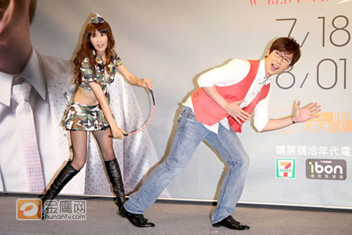 對(duì)于即將來到的世界巡回演唱會(huì),品冠的心情既期待又怕受傷害,一方面期待在演唱會(huì)中與歌迷的互動(dòng),另一方面則是擔(dān)心不景氣沖擊了票房,平時(shí)喜歡騎車運(yùn)動(dòng)的品冠,在昨天記者會(huì)特別騎上了他收藏許久的英國(guó)經(jīng)典品牌Brompton手工小折,沖破主辦單位準(zhǔn)備的“沖刺門”,期待沖出好票房,并沖破自己的尺度給歌迷大大的驚喜。