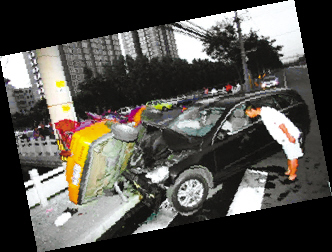 前天凌晨3點過,北京天氣微熱,北京朝陽區(qū)高碑店北路一處無紅綠燈的路口。一輛黑色R300奔馳車在道路上疾馳行駛。砰!只聽到一聲巨響,人們驚奇地發(fā)現(xiàn),向右側路口駛入的伊蘭特出租車,瞬間被奔馳車頂?shù)搅寺房诘碾娋桿上側翻,而奔馳車的前臉部分也被撞得面目全非,出租車駕駛員、乘客共三人不同程度受傷。奔馳車走下一人,傷者小王說,此人滿身酒氣,仔細一看,居然是《還珠格格》中演爾康的周杰……而肇事奔馳車前后都沒有懸掛號牌。事后,民警在后備廂中找到了號牌。