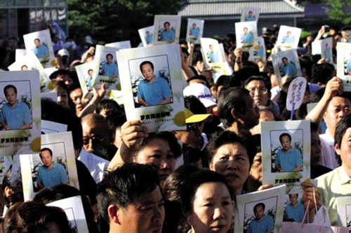 在哀樂(lè)聲中,不少群眾流下了眼淚,有的女性觀眾當(dāng)場(chǎng)嗚咽著說(shuō):“羅京一路走好!一路走好!”聲音極度悲戚。羅京的哥哥手捧遺像送了弟弟最后一程。整個(gè)過(guò)程中,羅京的哥哥一語(yǔ)未發(fā),雙目無(wú)神,表情悲痛,由于過(guò)于傷悲,這位中年人竟已捧不住手中那并不十分沉重的遺像,而是由倆位親友一直在一左一右用力攙扶才能前行。