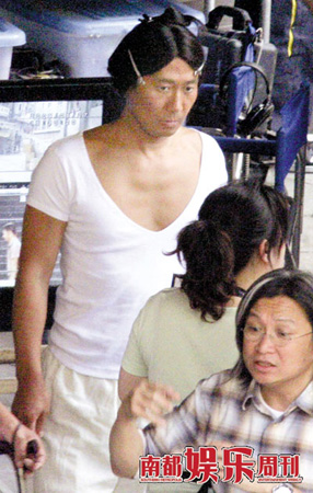在《十月圍城》中,黎明放下天王巨星的架子,扮演一名乞丐,也是“六義士”之一。乞丐已經(jīng)是一個(gè)夠倒霉的角色了,沒(méi)想到片場(chǎng)休息,黎明把假發(fā)一梳弄,竟成了驚世駭俗的天王級(jí)“如花”,不過(guò)據(jù)說(shuō)扮丑很容易拿影帝,黎明顯然是下定決心不怕?tīng)奚,剛剛出演過(guò)梅蘭芳的粉面就直接被化妝師糟蹋成黑臉,還特別給這位沒(méi)錢理發(fā)的乞丐先生留了一頭換七八糟的長(zhǎng)發(fā)。長(zhǎng)發(fā)未免有點(diǎn)熱,黎天王倒也挺能應(yīng)付,脫了戲服穿件“老頭衫”,還用兩個(gè)發(fā)卡把頭發(fā)梳弄上去,有利散熱。攝影師的長(zhǎng)鏡頭在片場(chǎng)找了很久,才終于在導(dǎo)演棚里找到了“黎如花”。